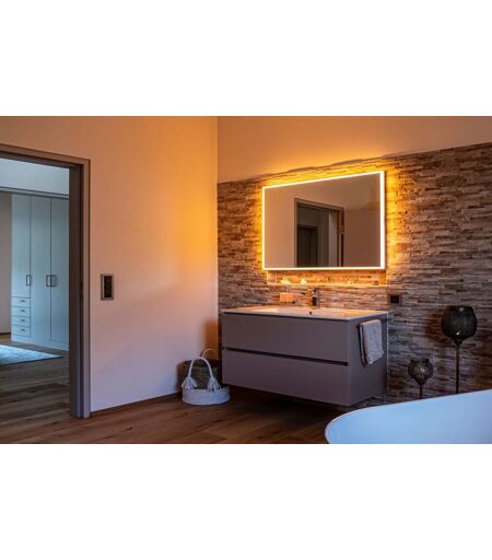 Schneider Lichtspiegel Schneider A-Line HCL, 166.360.01.50 Details: Rahmen aus Aluminium Aufputzmontage Rahmen bei der Montage um 180 Grad drehbar Beleuchtung LED rundum direkt Human Centric Lighting (Tageszeitsteuerung dimmbar und Farbtemperatur stufenlos einstellbar) Folientastatur seitlich an Rahmen 2000 - 6500 Kelvin Energieeffizienzklasse D IP44 12622 Lumen 84 Watt Breite 1600 mm Höhe 760 mm Tiefe 55 mm Oberfläche silbereloxiert Kelvin: 2000 - 6500 Lumen: 12622 Watt (Beleuchtung): 84 Watt Schutzklasse: IP44 Breite (mm): 1600 Höhe (mm): 760 Tiefe (mm): 55 Durchmesser (mm): Anzahl Türen: Anschlag (Scharnierseite): Oberfläche/Farbe: Oberfläche silbereloxiert Zubehör: Gewicht Brutto (kg): 27,500 Hersteller: W. Schneider GmbH, Göllheim ...