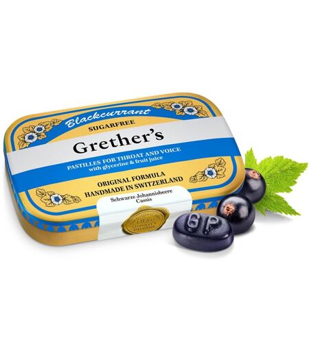 Grethers Blackcurrant Silber zuckerfrei Pastillen Dose