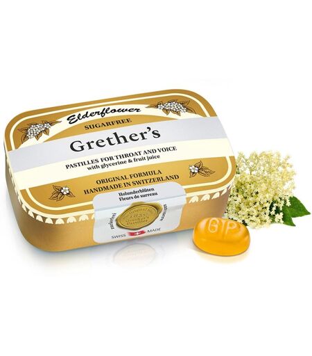 Anwendungsgebiet von Grethers Elderflower zuckerfrei PastillenGrethers Elderflower zuckerfrei Pastillen - Eine Wohltat für Hals und Stimme.