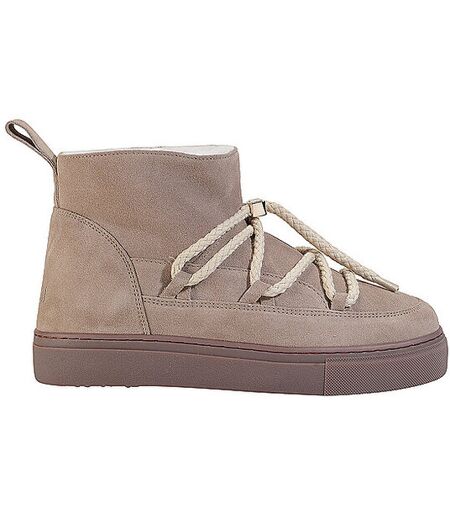 Damen Snowboots aus hochwertigem Veloursleder Komplett gefüttert Runde Vorderkappe Schnürung am Rist Strukturierte Außensohle Rutschhemmende Laufsohle Label-Stitching an der Hinterkappe Farbbezeichnung: Beige Obermaterial: Leder Futter: Echtfell Decksohle: Echtfell Laufsohle: Gummi ...