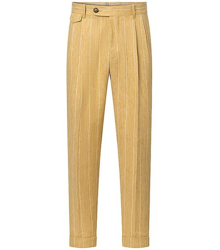 Herren Anzughose aus hochwertigem Baumwoll-Mix Bundfaltenhose aus Leinenmischung angesetzter Bund mit Schlaufen für Gürtel bis 4 cm zu schließen mit verdecktem Zipper und Knöpfen klassische Bügelfalten 2 seitliche Eingrifftaschen und eine Coin Pocket mit Patte Elegante Nadelstreifen 2 knöpfbare Pattengesäßtaschen Hosenbeinabschlüsse mit fixiertem Umschlag Farbbezeichnung: Open Yellow Passend zu Sakko: 7699096 Material: 47% Leinen, 37% Baumwolle, 13% Polyester, 3% Sonstige Faser Futter: Glatte Qualität aus 55% Viskose, 45% Polyester ...