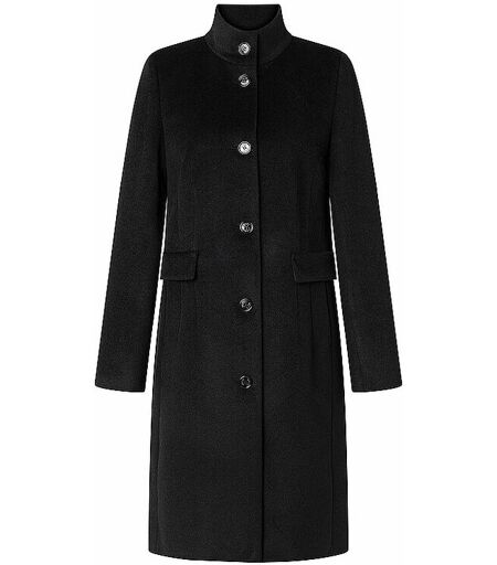 Damen Mantel in Woll-Optik Stehkragen Schließt mit Knopfleiste Langarm Seitliche Eingrifftaschen mit Patten Gerade Passform Unifarben Länge: Ca: 96 cm Farbbezeichnung: Black Material: 45% recycelter Acryl, 30% recycelter Polyester, 20% ...