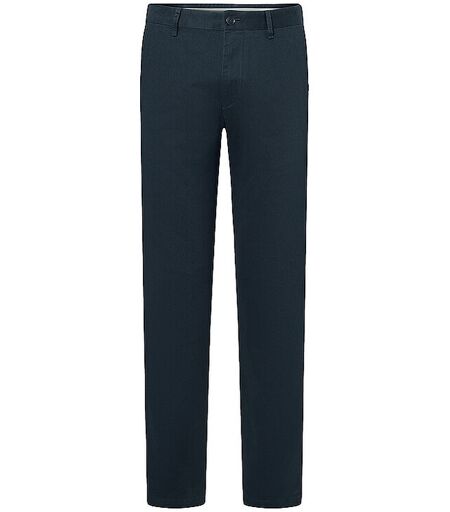 Klassische Herren Chino aus Baumwoll-Stretch Schließt mit Knopf und Reißverschluss Zwei Eingrifftaschen Paspelierte Gesäßleistentaschen Mittlere Leibhöhe Schmal geschnitten Unifarben Farbbezeichnung: Dark Blue Material: 97% Baumwolle, 3% Elasthan ...