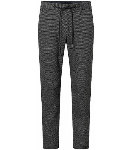 Herren Chino aus hochwertigem Viskose-Mix Schließt mit Knopf und Reißverschluss Tunnelzug Seitliche Eingriffstaschen Zwei paspelierte Gesäßtaschen Hahnentrittmuster Mittlere Leibhöhe Schmaler Beinverlauf Farbbezeichnung: Anthrazit Material: 66% Polyester 32% Viskose 2% Elasthan ...