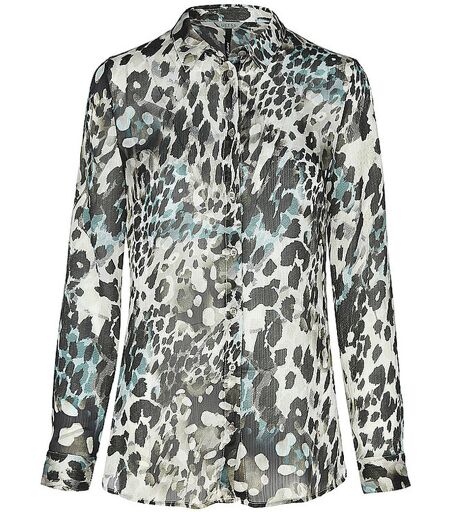 Damen Bluse aus Chiffon Klassischer Hemdkragen und lange Ärmel mit Manschetten. Bequeme Passform. Leoprint allover. Knopfverschluss. Langarm Gerade Passform Farbbezeichnung: Aquarelle Leopard Material: 100% Polyester ...