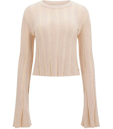 Damen Shirt aus Woll-Mischung Rundhalsausschnitt Langarm Unifarben mit Glitzer-Effekt Gerade Passform Farbbezeichnung: Beige Heather Lur Material: 53% Polyamid, 22% Polyester, 15% Acrylic, 7% Wolle, 2% Metallised, 1% Elasthan ...
